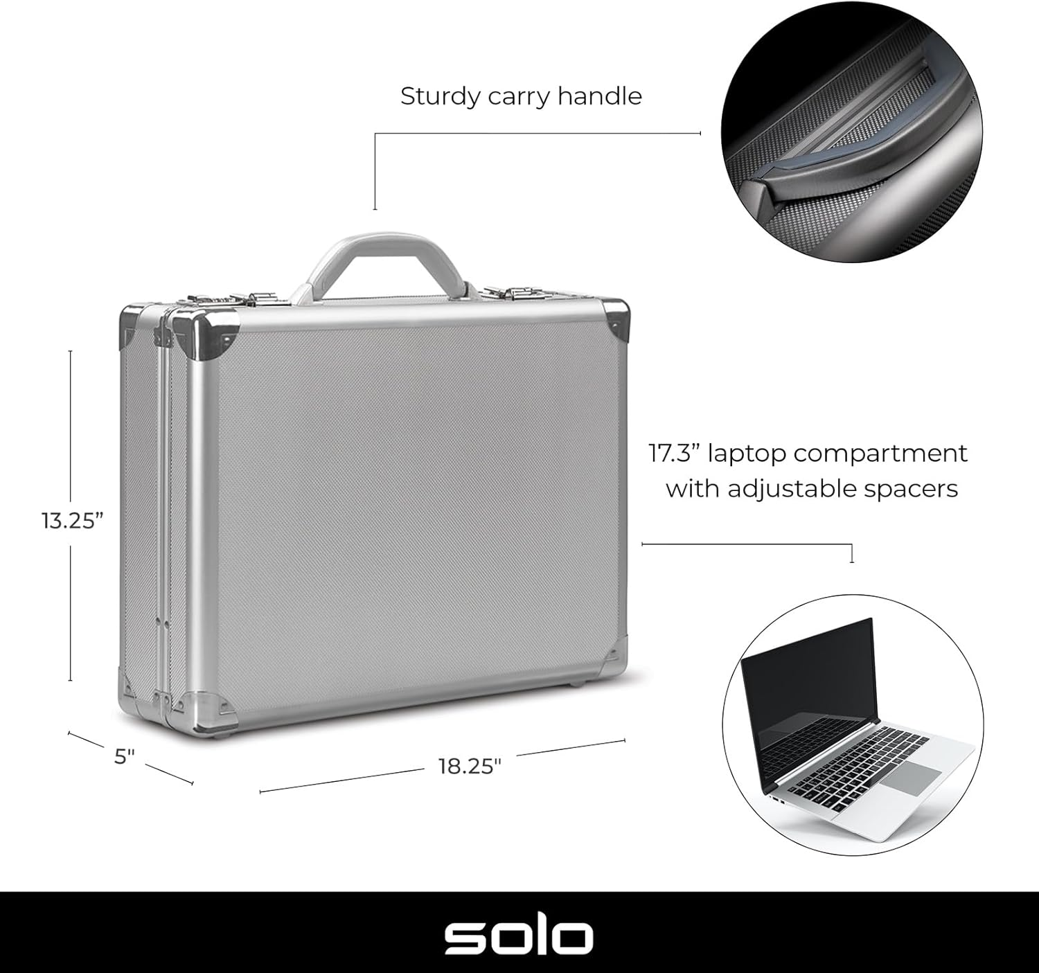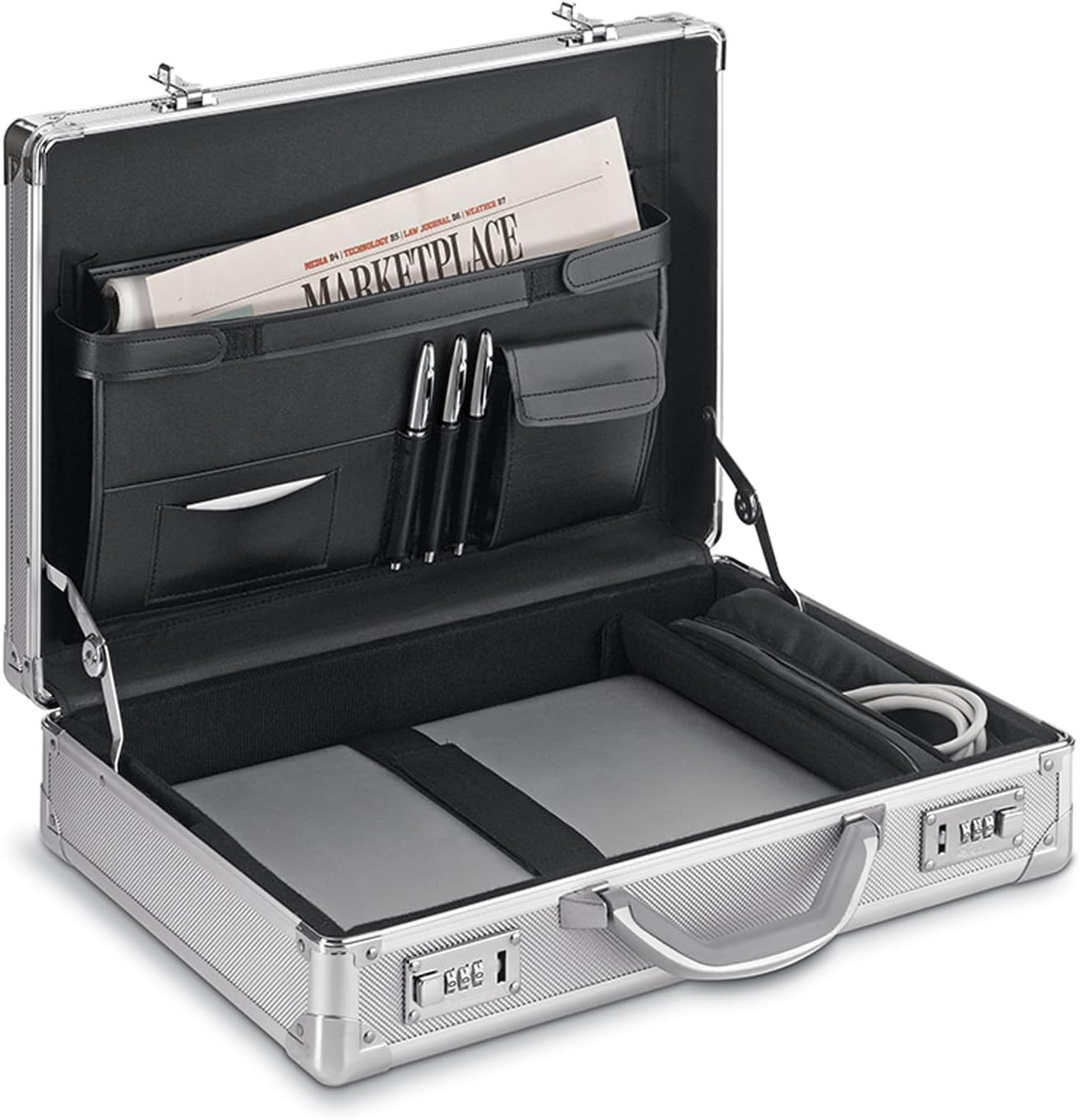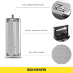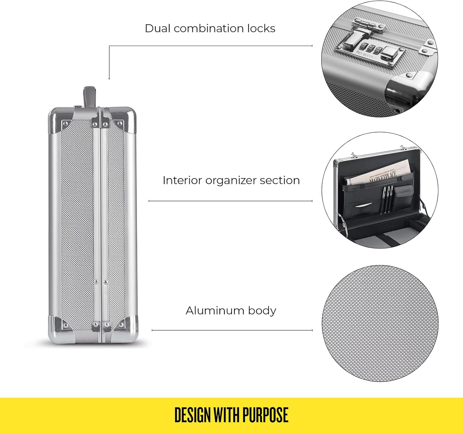 - Aluminum Briefcase: This stylish, durable attaché case has dual combination locks to ensure business essentials, files, and papers are safely secured. Corner guard protectors protect against wear and tear