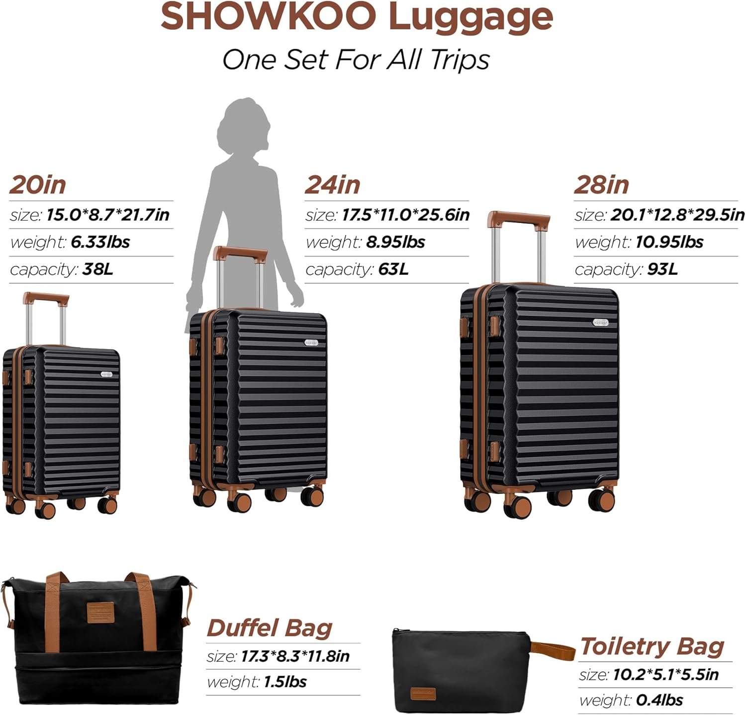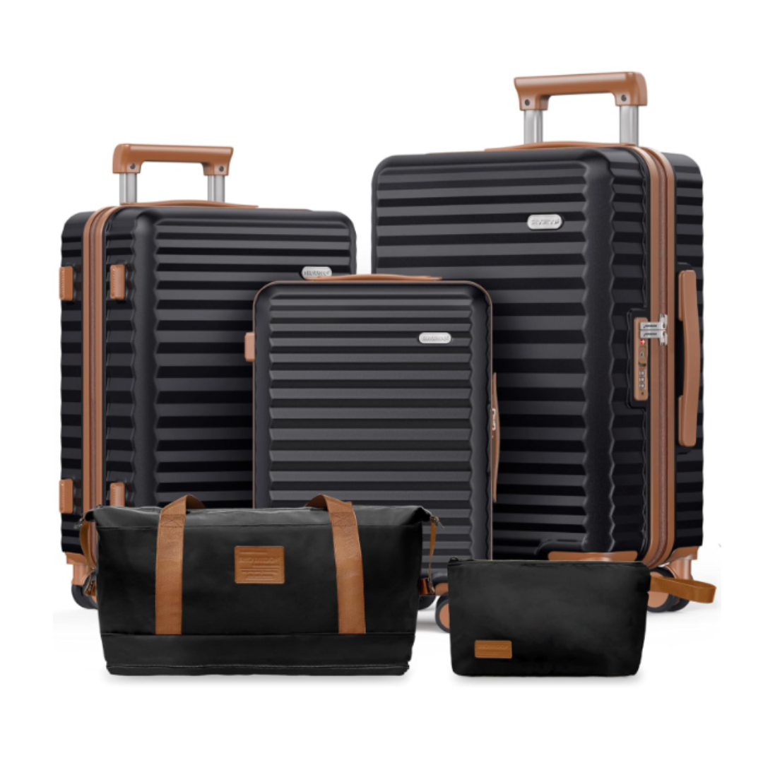 - 5-Piece Affordable Luggage Sets: The 5-piece luggage set offers a 20” carry-on suitcase, a 24” checked suitcase, a 28” large suitcase, a weekender duffel bag and a toiletry bag. Stylish, lightweight and large capacity design to meet all your travel needs.