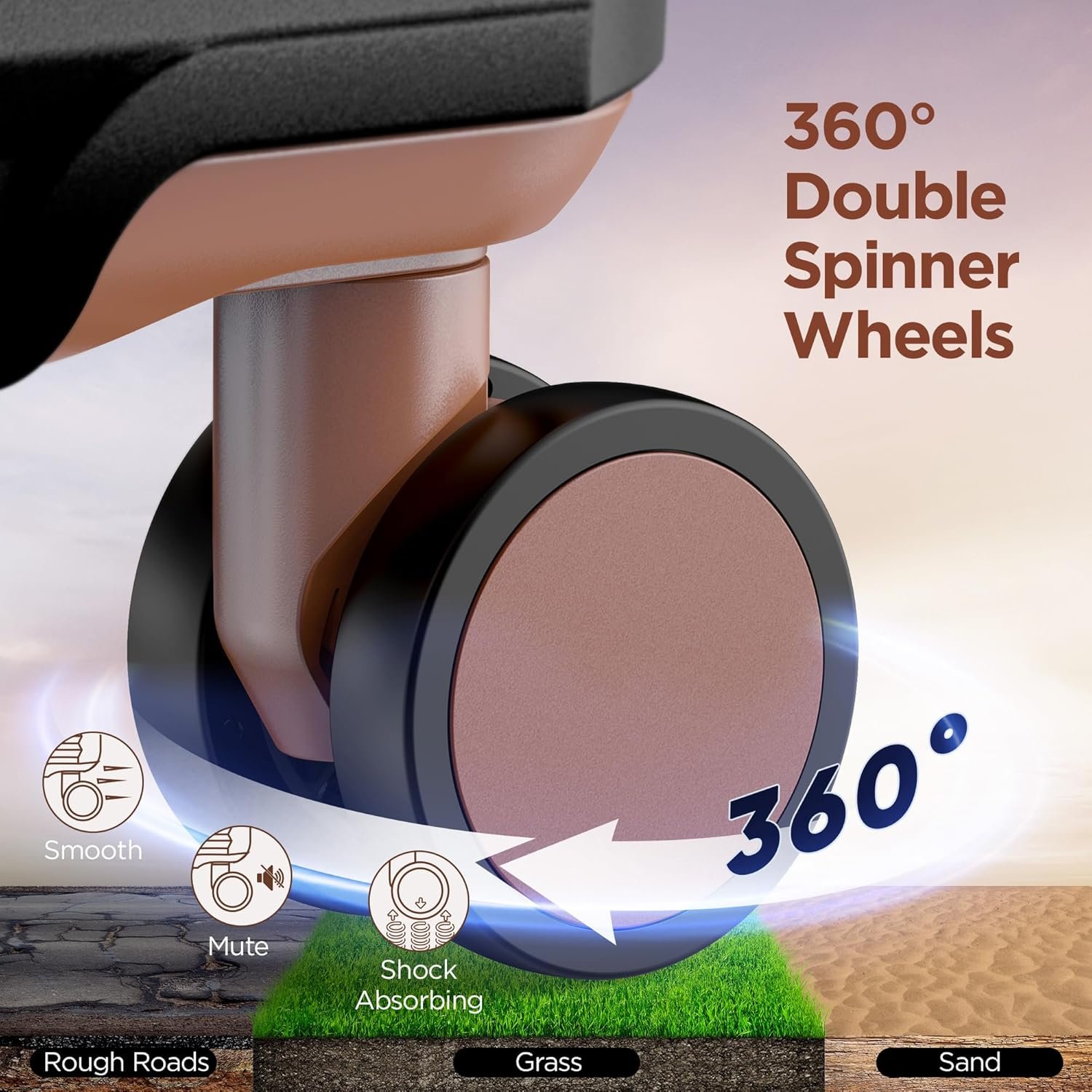 - Suitcase with Double Spinner Wheels: The adjustable and sturdy aluminium 3-step telescopic handle is suitable for people of different heights, and with 360° double spinner wheels, it allows you to move quietly and smoothly on the journey.