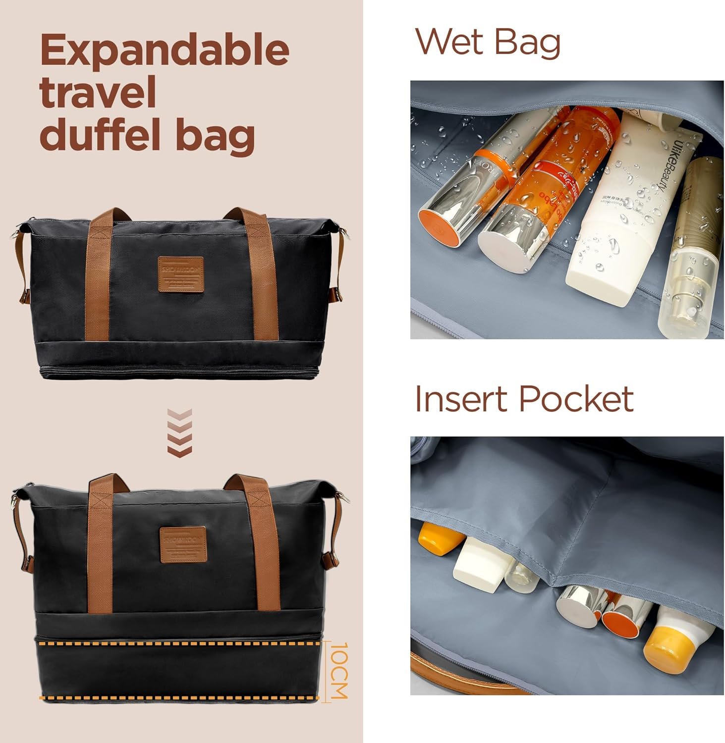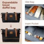 - Multi-functional travel bag: The Expandable Weekend Duffel Bag and Toiletry Bag is made from polyester fabric and is lightly waterproof. Designed with a pocket sleeve that attaches to the luggage handle, this weekend bag frees up your hands while providing quick access to your belongings.
