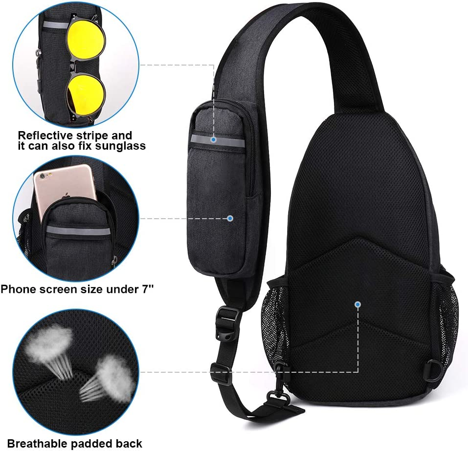 - Superior Material: The shoulder strap and the back is made of breathable material, make you feel comfortable when travel, hiking and so on.And the sling bag is water resistant.