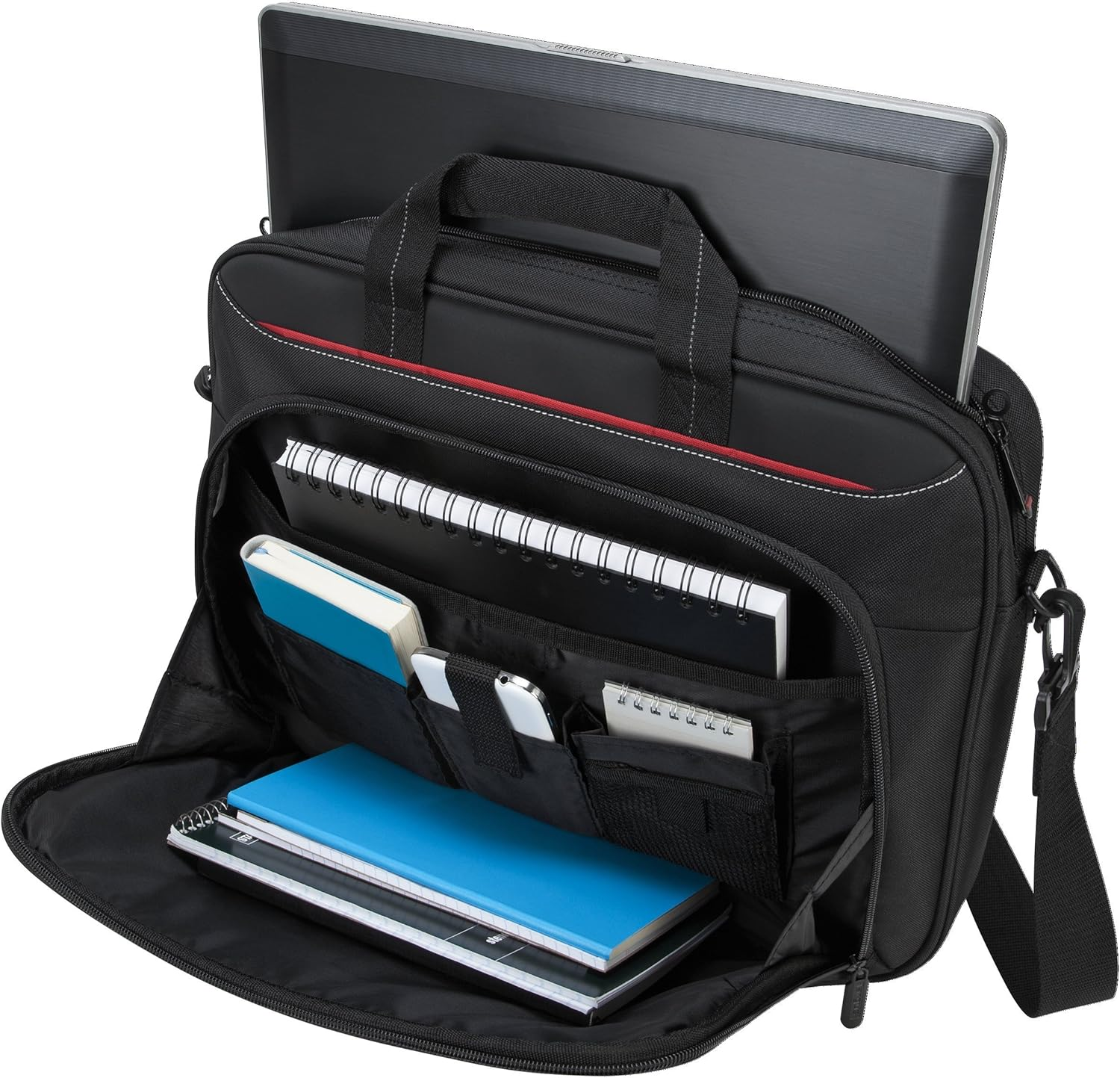 16″ Classic Slim Laptop Bag is both slim and lightweight, perfect for on-the-go professionals. Features multiple practical compartments, padded shoulder strap, and high-grade construction, this computer bag helps protect your device while you’re on the move. The spacious design has larger pockets for files, a padded laptop sleeve, smaller slots for notepads, power bank, etc., and a dedicated exterior document pocket on the back. Various carrying options include a padded grab handle, adjustable padded shoulder strap, and rear trolley strap for connecting to your luggage or roller bag. Classic Slim’s foam padded laptop compartment fits most 16″ laptops and smaller. High-quality padding protects your laptop and portable devices from shocks, bumps, drops, scratches, dust, and a lot more! The overall density is just the right amount for providing maximum protection. Targus computer and laptop bags will be your go-to travel and workplace buddy for years. Top-grade polyester exterior is reinforced with premium stitching, contoured metal zipper pulls, polyurethane-coated bottom, and durable soft padding are all part of the long-lasting and lightweight design. Classic Slim laptop carrying case can be used for anything and everything! Carry files, business cards, keys, storage drives, power bank, laptops, tablets, and other on-the-go essentials. Whether commuting to work, heading to the coffee shop, or traveling for a conference, this is the laptop briefcase you need.