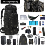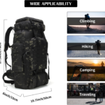 - 【Hiking Backpack Structure】: The 70L camping backpack main compartment is drawstring closed, hiking backpack roomy enough for you storage hiking gear, shoes and luggage, 1 laptop compartment, 1 front zipper pocket and 2 side pocket for separate and orderly storage.
