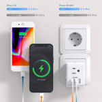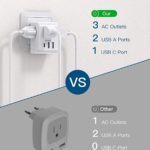 - 【USB C Fast Charge 】- The plug extender total output of 3 USB ports is 5V/3.1A. Built in smart technology, the multi plug outlet can auto-detect charged devices and deliver optimum charging speed up to 5V/2.4A (max) each port, USB-C up to 3A.( Please note The UCB-C port is not Quick Charger 3.0, doesn’t support any other devices which need 9~22V charging voltage.)