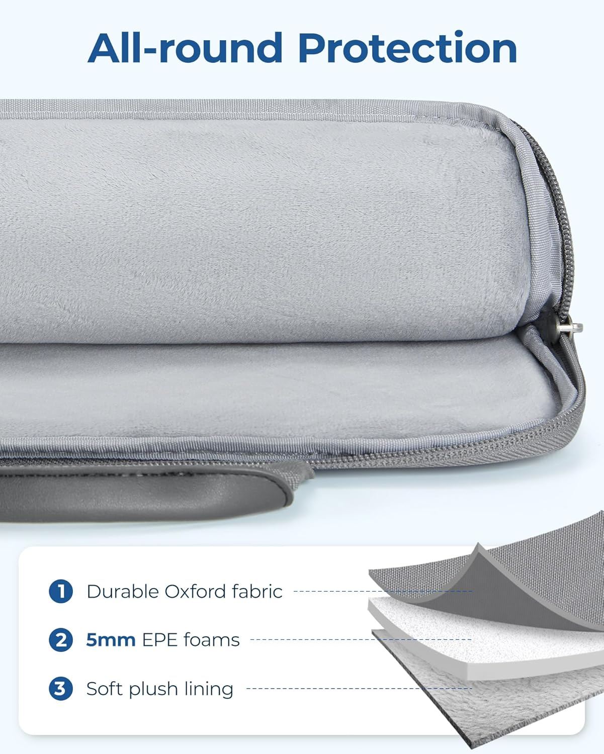 - Superior Protection: Your device deserves the best, and our laptop sleeve delivers. Featuring a robust three-layer protection system: durable Oxford fabric exterior, shock-absorbing 5mm EPE foam middle layer, and a soft plush lining interior. This MacBook case provides comprehensive safeguarding against bumps, drops, and scratches. Rest easy knowing your valuable tech is shielded from daily wear and tear, making it the perfect companion for your on-the-go lifestyle