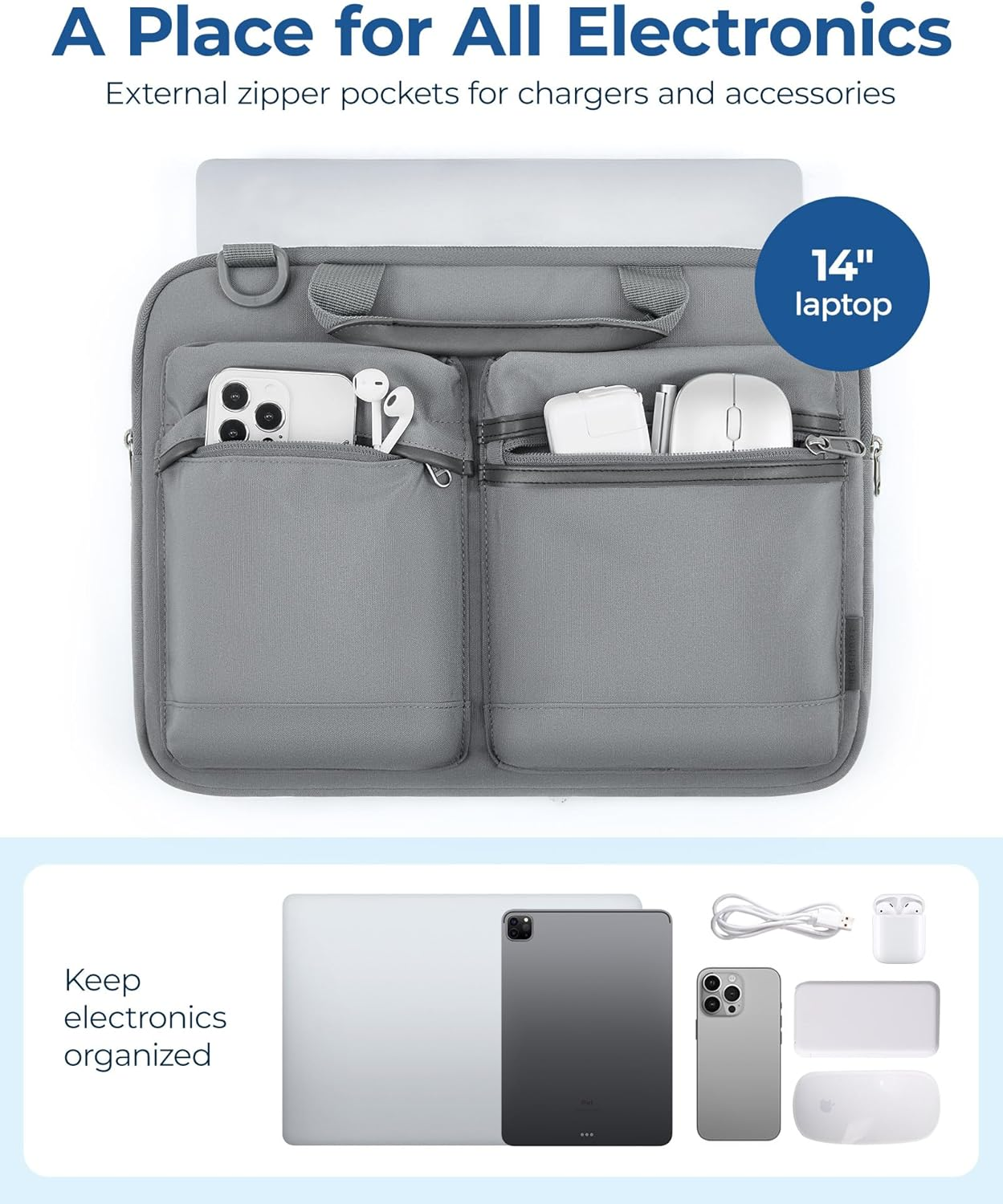 - Innovative Storage: Stand out with our unique front dual zippered bulge pockets. This laptop bag combines professionalism with practicality, offering easy access to your essentials. Store your Bluetooth earphones, mouse, passport, documents, tissues, or even a tablet with ease. The distinctive design not only enhances functionality but also adds a touch of sophistication to your MacBook sleeve. Stay organized and efficient, no matter where your work takes you