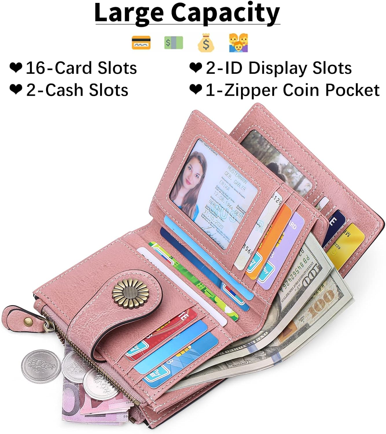 Leather Wallet for Women – RFID Blocking with Zipper Coin Pocket
