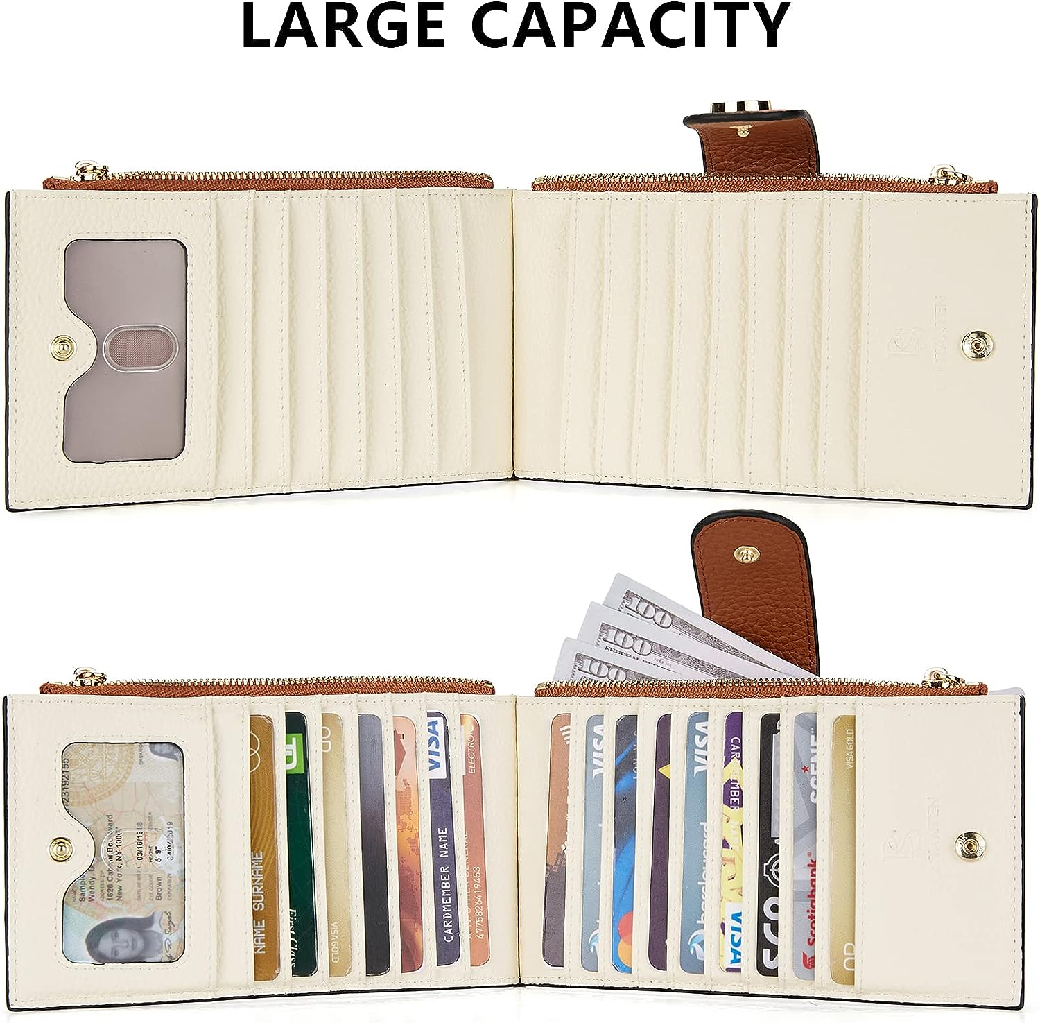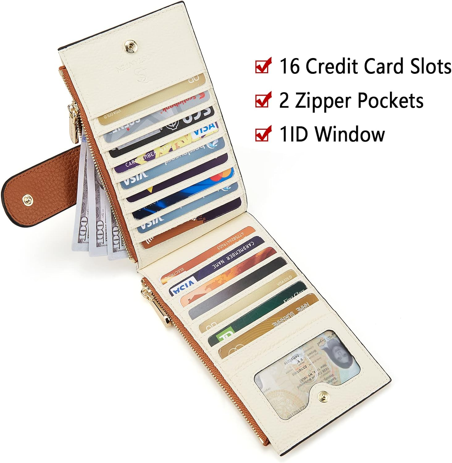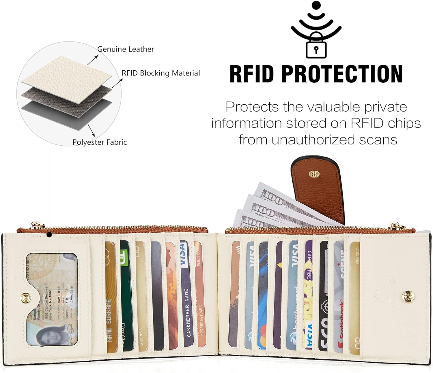 Leather Wallet for Women with RFID Blocking & Zipper Pocket