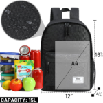 - 【Lightweight Lunch Backpack for Women】: Exterior dimension: 16.5*12*4.75 inch/ 42*30.5*12cm. Weight: 0.8 LB/ 370g. Capacity: 15 L. It is plenty of room for you to pack 1-2 person’s daily lunch. It can hold up to 16 cans of 330ml drinks and still have room for ice packs. Ideal as a lunch cooler, daypack for women