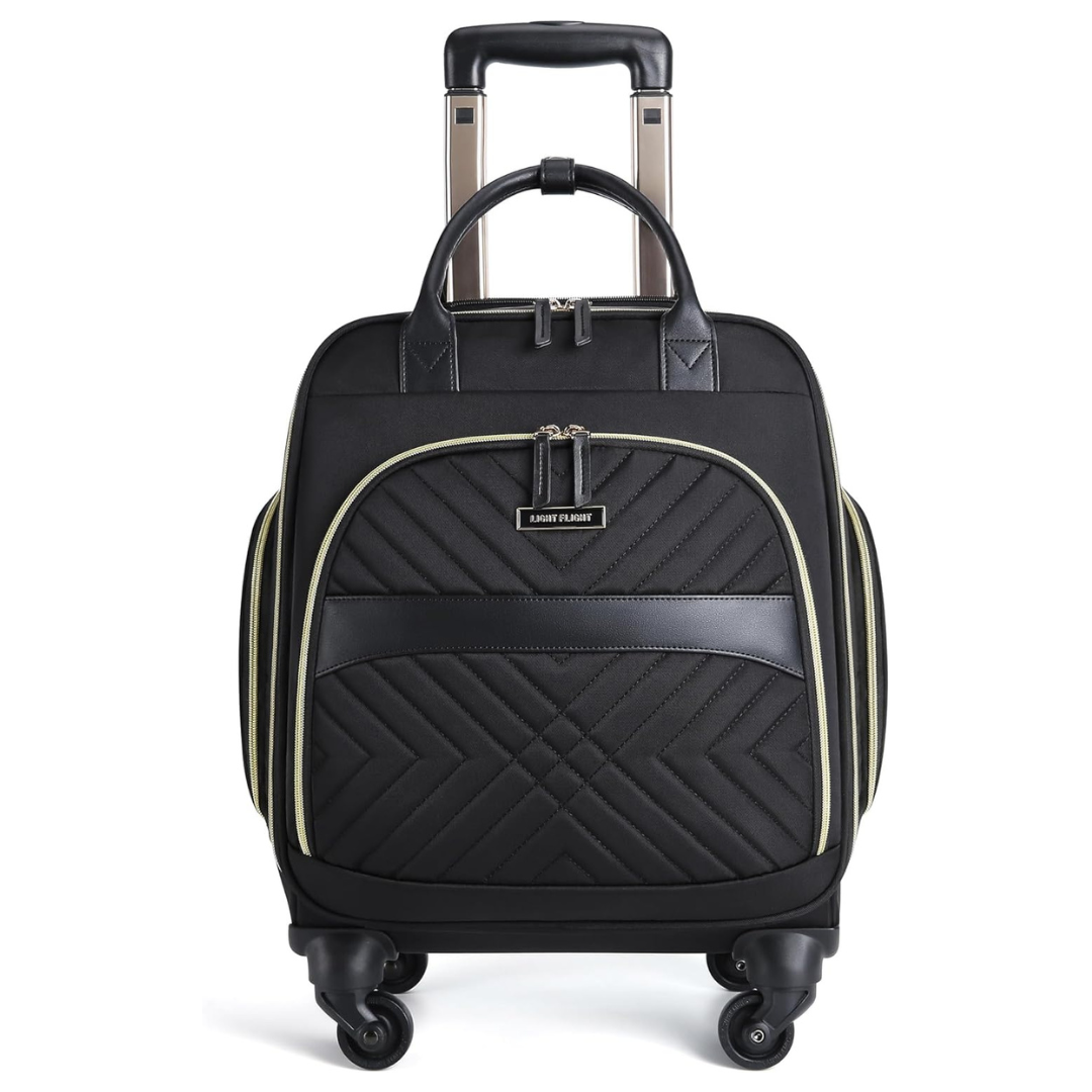 - High Quality: rolling laptop bag is made of quilted water-resistant nylon fabric. It can be carried on the plane and put into the overhead bin. The rolling briefcase features superior handle and rubber pulleys to ensure smooth manoeuvring for a secure and pleasant travel experience. The concealable pull rod glides easily without stuttering. The wheels straight through the 24 km bumpy road test, smooth without jamming