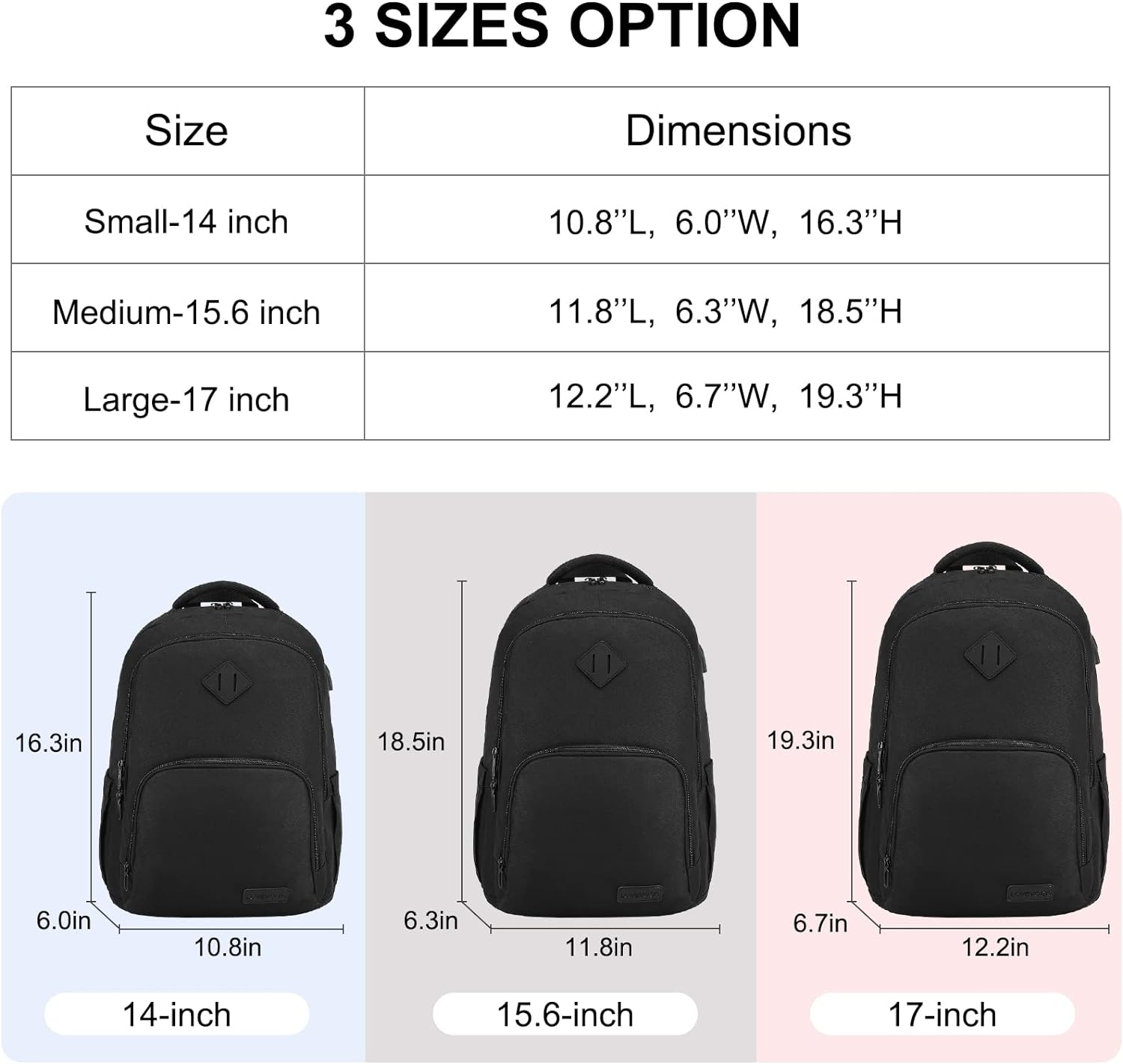 - Capacity design: A separate computer compartment can hold laptops of 15.6 inches and below. A main spacious packing room, and there are multiple pockets, pen pockets and compartments for small items at the front to keep your items organized and easier to find. An anti-theft pocket located on the back keeps your passport, wallet, phone and other valuable items safe and handy