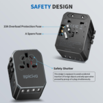 - PORTABLE AND SAFE – This compact and lightweight travel essentials is ideal for travelers, overseas business, work, and students. It does not have surge protection and can be conveniently used on a cruise ship as well. Built-in 10A fuse, safety shutters, separate plug lock system, RoHS, CE, and FCC certifications provide extra peace of mind.
