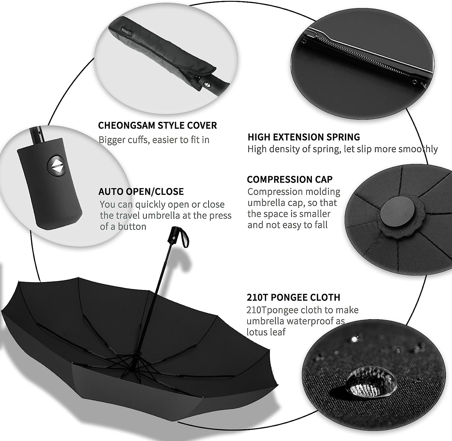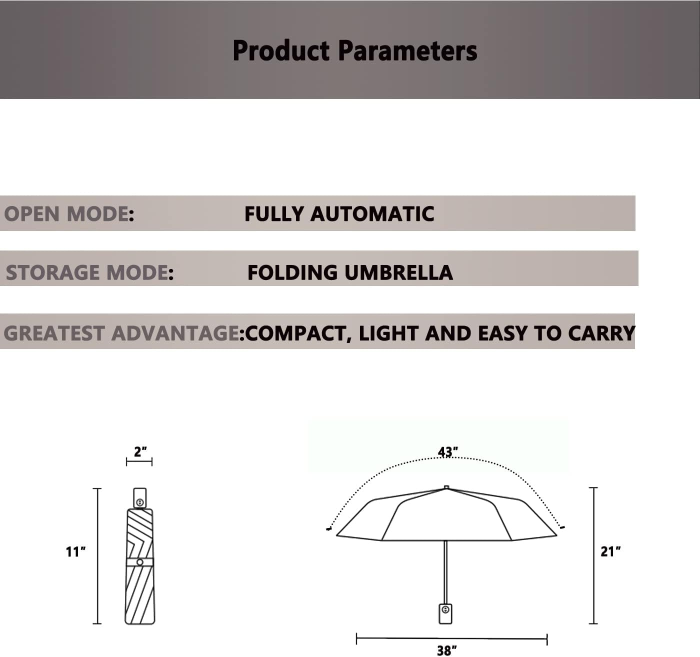 - Fully Automatic Umbrella- Easy one hand operation with one auto open & close button, simply touch it to expand or collapse;