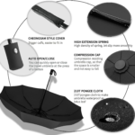 - Windproof – 8 reinforced fiberglass ribs flex slightly in powerful gusts keeping the umbrella from turning inside out and leaving you soaked;